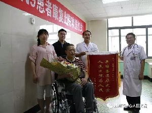 5月23日,全市首例重癥H7N9患者經過93天的搶救治療,闖過一道道生死關,康復出院。 出院現場,醫務人員為患者送上了鮮花,表示誠摯的祝福;患者手持錦旗感謝各