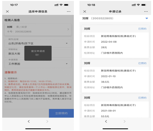 完成以上操作后,用戶就可以使用“核酸檢測”服務了。