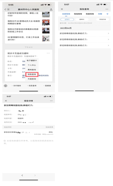 在使用“核酸檢測”服務前,用戶首先要關注我院“滕州市中心人民醫(yī)院”微信公眾號,并綁定就診卡。