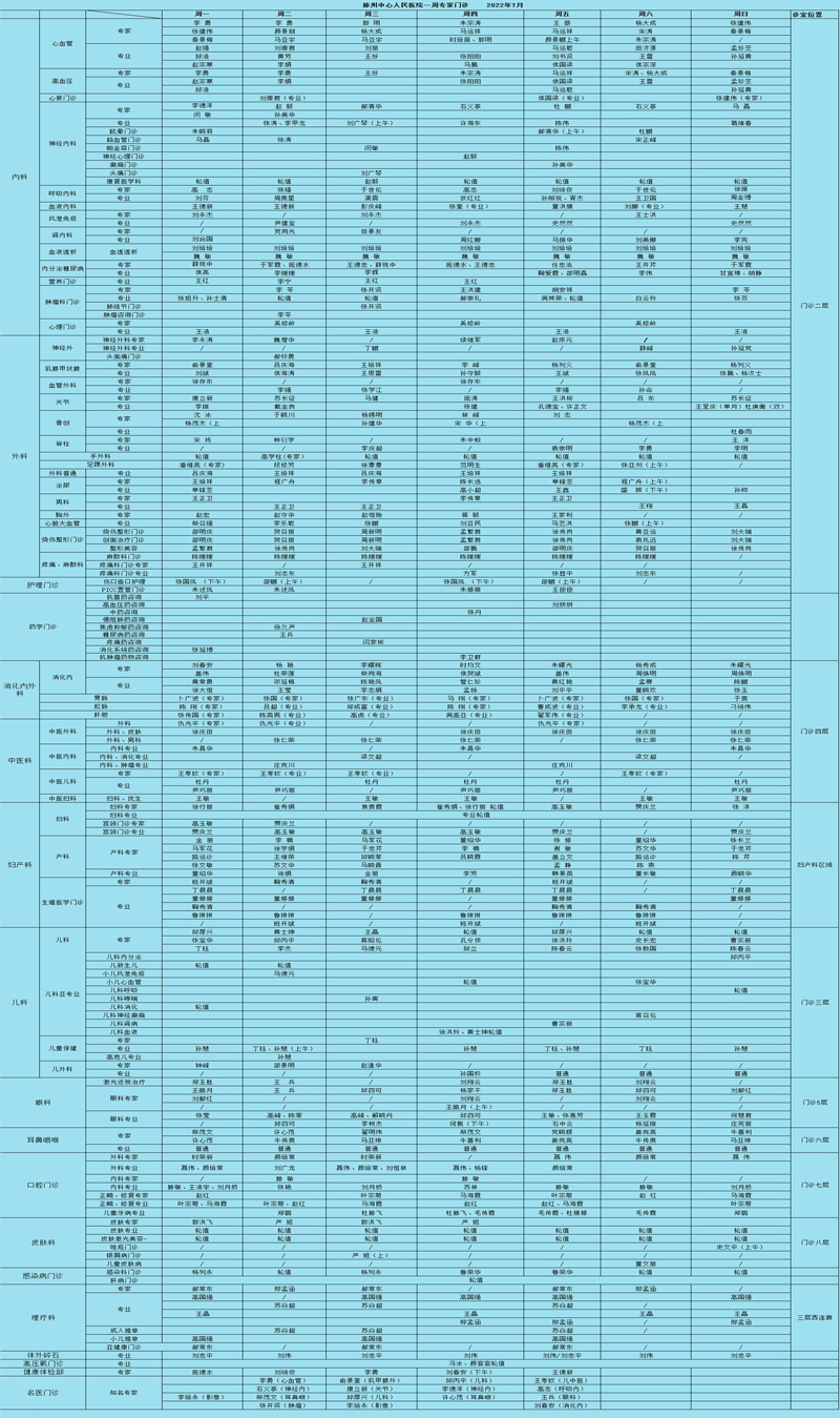 關(guān)注|滕州市中心人民醫(yī)院7月一周專家、專業(yè)門診排班表