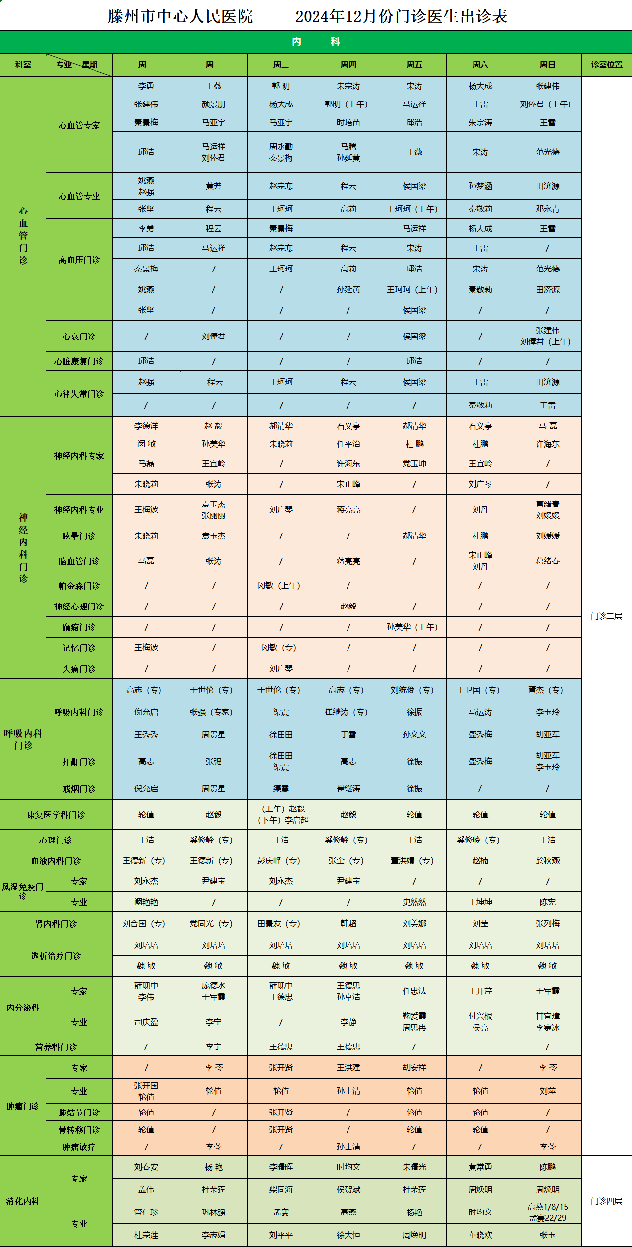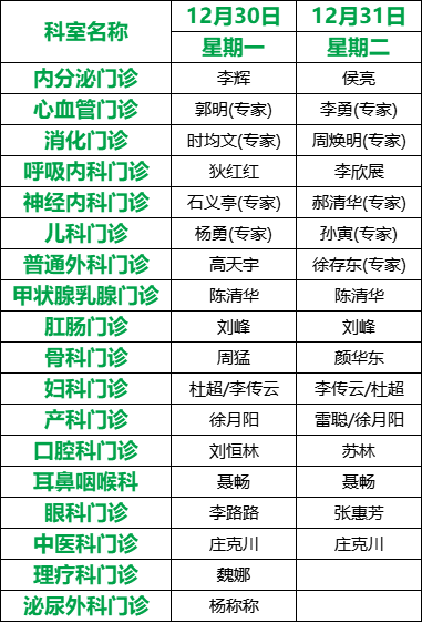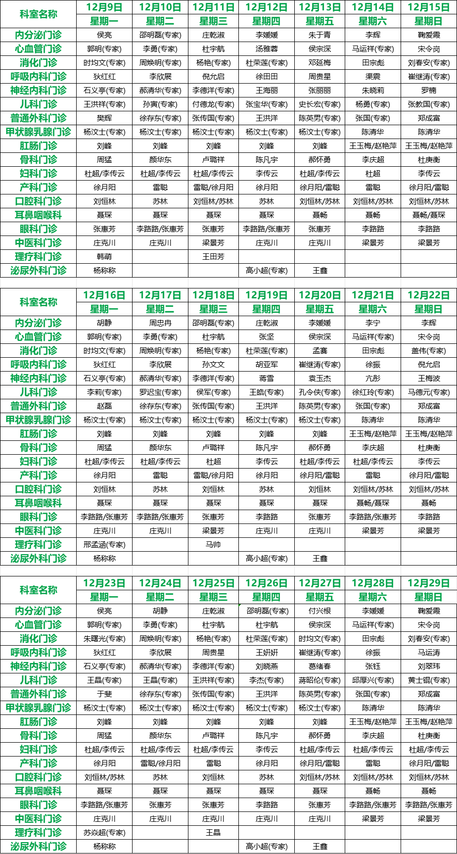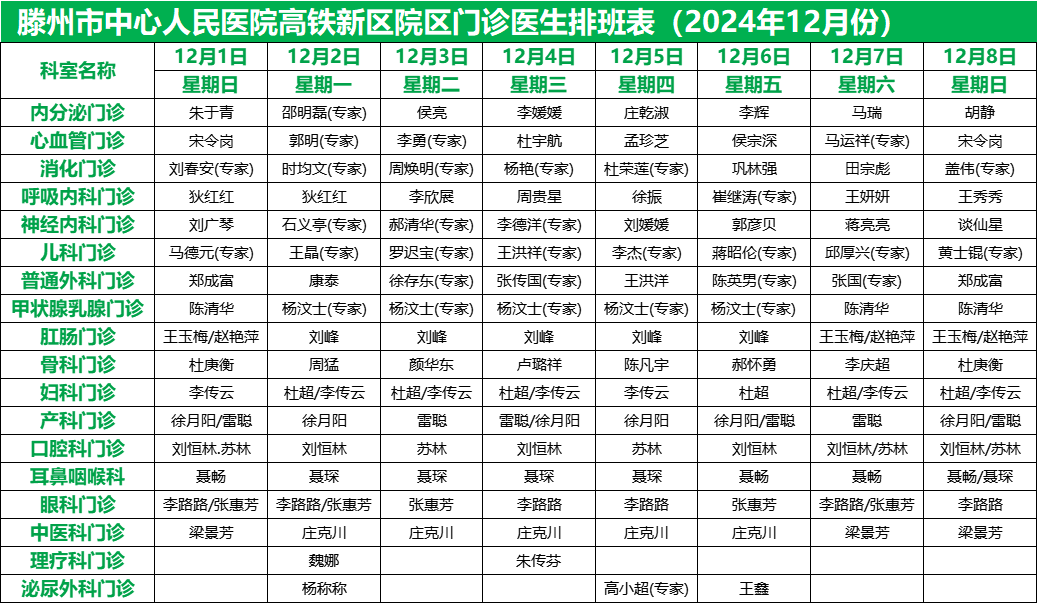關注 | 滕州市中心人民醫(yī)院12月份專家、專業(yè)門診排班表