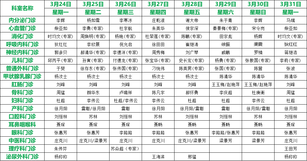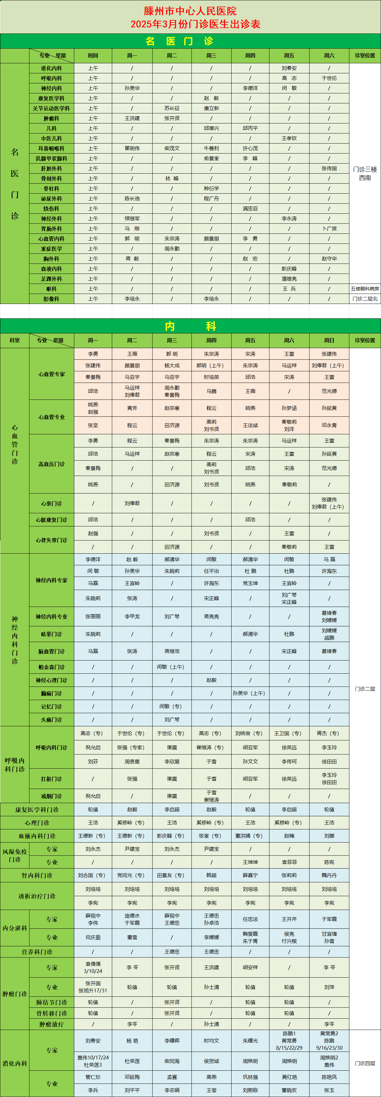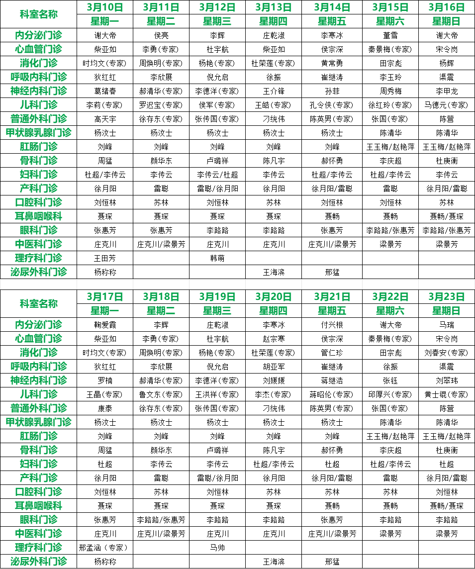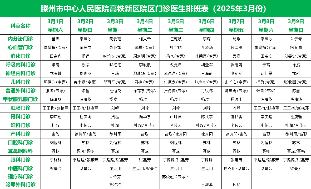 關注 | 滕州市中心人民醫院3月份專家、專業門診排班表