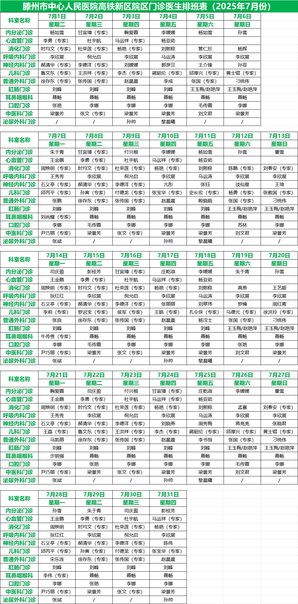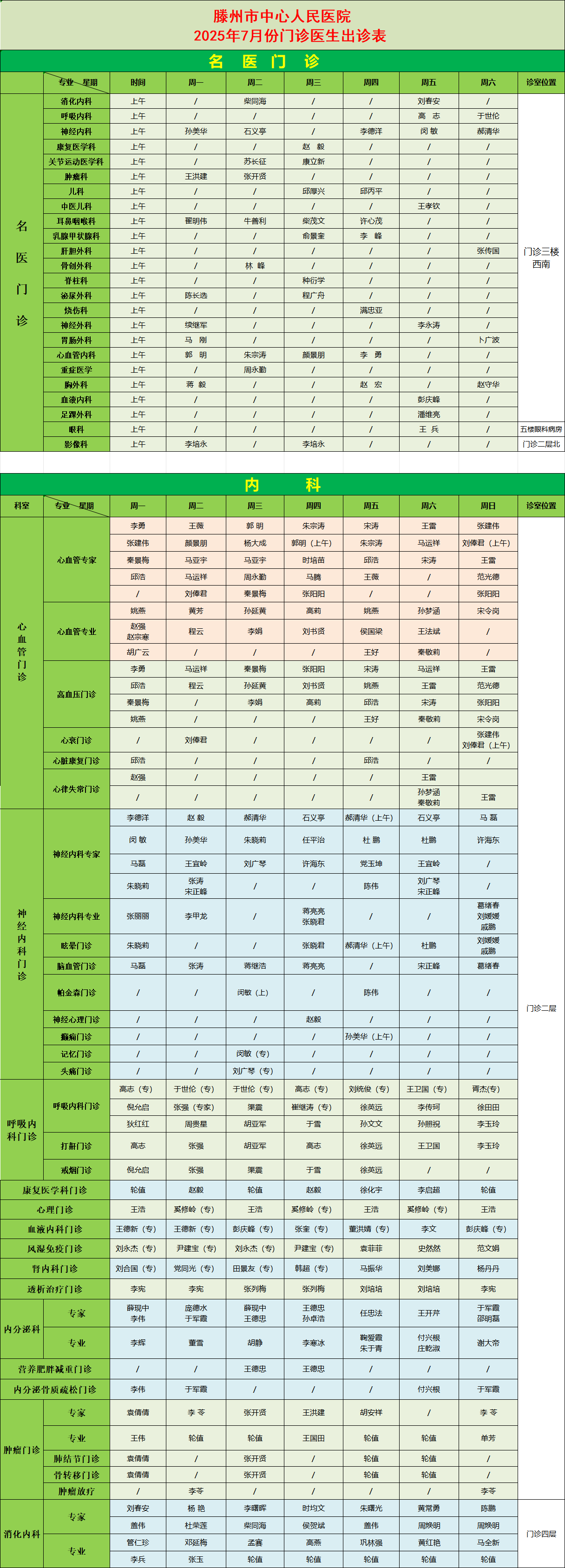 關(guān)注 | 滕州市中心人民醫(yī)院7月份專家、專業(yè)門診排班表