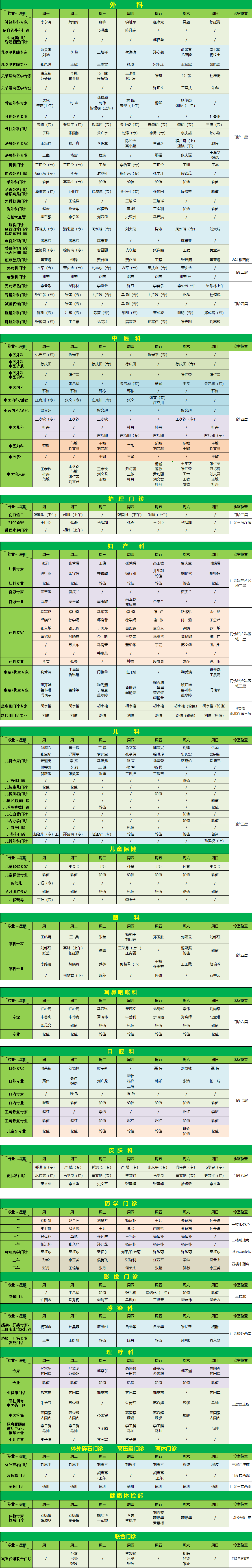 關注 | 滕州市中心人民醫院8月份專家、專業門診排班表