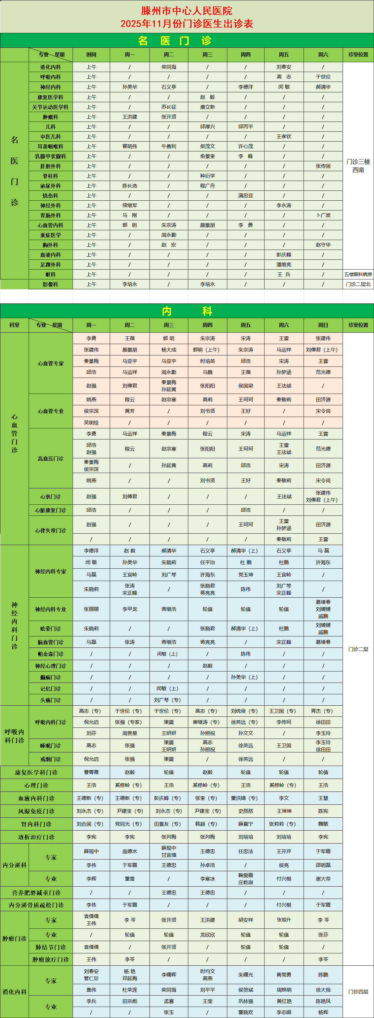 關注 | 滕州市中心人民醫(yī)院11月份專家、專業(yè)門診排班表
