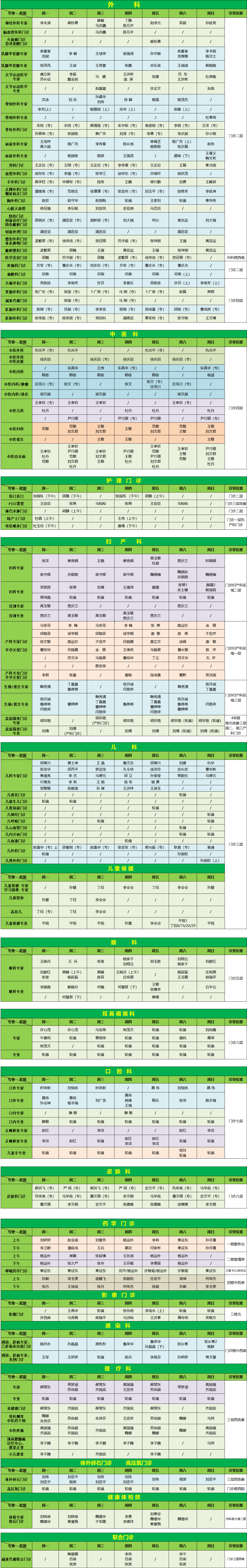 為了提供優(yōu)質的醫(yī)療服務,我們?yōu)槟l(fā)布最新的門診醫(yī)生坐診信息,便于您根據(jù)自身情況,選擇合適的醫(yī)生、合適的時間就診,希望能為您的就診帶來便利。