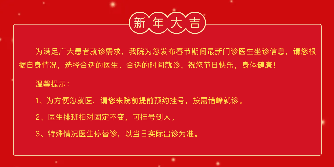 2026年春節(jié)期間門(mén)診醫(yī)生出診表