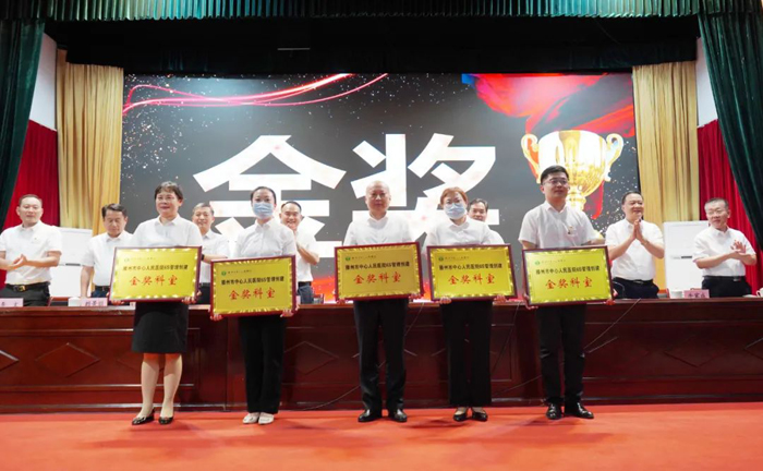 接下來,院領(lǐng)導(dǎo)班子成員對(duì)第五、六批推廣科室獲獎(jiǎng)科室進(jìn)行頒獎(jiǎng)。45個(gè)科室共評(píng)出金獎(jiǎng)5個(gè)、銀獎(jiǎng)6個(gè)、銅獎(jiǎng)11個(gè)。產(chǎn)科VIP一病區(qū)、產(chǎn)科VIP二病區(qū)、超聲科等科室代表上臺(tái)領(lǐng)獎(jiǎng)。