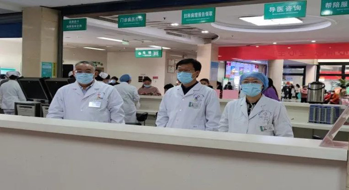 10月19日,院黨委委員、紀委書記趙逢平帶領相關職能部門負責人,在門診導診臺值班,零距離服務患者,落實投訴閉環管理。(門診部)