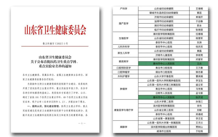 近日,山東省衛(wèi)生健康委員會(huì)公布首批醫(yī)藥衛(wèi)生重點(diǎn)學(xué)科、重點(diǎn)實(shí)驗(yàn)室名單,我院眼科、腫瘤科獲評(píng)山東省首批醫(yī)藥衛(wèi)生重點(diǎn)學(xué)科。