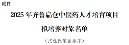 近日,山東省衛生健康委員會發布關于2025年齊魯扁倉中醫藥人才培育項目擬培養對象的公示名單,經個人申請、單位推薦、考試選拔、專家評審、公示等程序,最終確定100名齊魯扁倉中醫藥人才培育項目培養對象。我院中醫科張文副主任醫師憑借扎實的專業功底、突出的臨床能力和學術潛力,經層層選拔成功入選該人才培養項目。