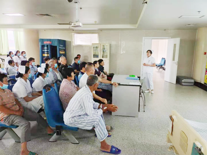 課堂上,患者及家屬踴躍咨詢有關(guān)自身健康存在的疑問,田醫(yī)生和徐慶梅護(hù)士長分別從醫(yī)療和護(hù)理的角度一一耐心地做出解答,特別是對(duì)造影患者術(shù)前、術(shù)后的顧慮和心理狀況進(jìn)行了分析糾正和總結(jié)。