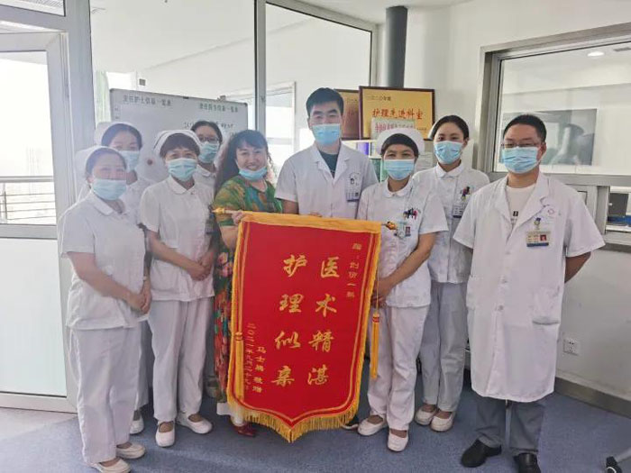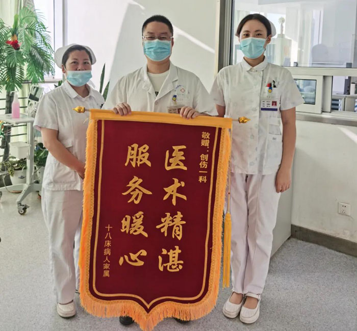 近日,住院患者家屬馬女士將一面“醫術精湛、護理似親”字樣的錦旗送至醫護人員手中,以表達對創傷一科全體醫護人員的感激之情。