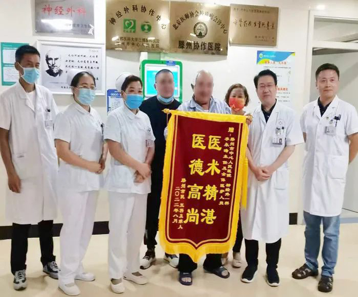 近日,患者王先生將一面錦旗親手送給神經外一科李永濤主任。