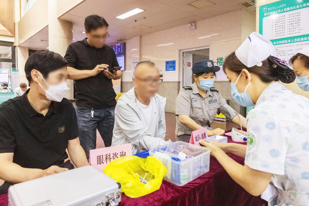 6月5日上午,在眼科主任王兵、護(hù)士長唐蕾蕾的帶領(lǐng)下,醫(yī)護(hù)人員們在門診一樓大廳開展義診及科普宣傳活動(dòng)?;顒?dòng)中,專家們耐心地回答群眾咨詢的各種問題,并對(duì)有眼部疾患的市民進(jìn)行初步的裂隙燈檢查、眼底篩查、眼壓檢查等,細(xì)致地講解疾病成因和注意事項(xiàng),給出下一步檢查和治療建議。同時(shí),現(xiàn)場免費(fèi)測量血壓、檢測血糖;發(fā)放白內(nèi)障等眼疾的科普宣傳資料,讓群眾了解白內(nèi)障的成因,何時(shí)需要手術(shù)以及手術(shù)的方式等,做到眼疾早發(fā)現(xiàn)、早診斷、早治療。