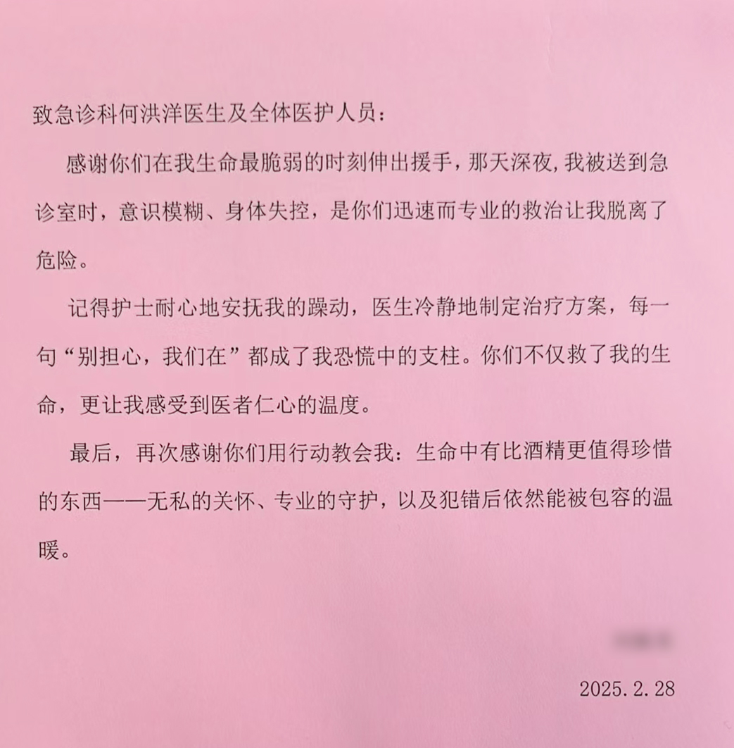 當我在病床上逐漸恢復清醒時,心中涌動的不僅是后怕與愧疚,更有無盡的感激。此刻提筆寫下這封信,希望能向你們表達我最真摯的謝意。