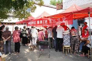 9月7日,我院醫(yī)技黨總支醫(yī)護(hù)人員在黨委委員、監(jiān)察室主任、醫(yī)技黨總支書記李文的帶領(lǐng)下,到南沙河鎮(zhèn)開展“健康棗莊服務(wù)百姓惠民義診”活動(dòng)。南沙河鎮(zhèn)副鎮(zhèn)長(zhǎng)滿蘇寧參加活動(dòng)?;顒?dòng)現(xiàn)場(chǎng),志愿者義診專家通過懸掛宣傳橫幅、發(fā)放宣傳資料、設(shè)置問診臺(tái)、血壓檢測(cè)臺(tái)、血糖檢測(cè)臺(tái)、心電圖檢查區(qū)等,為群眾提供醫(yī)療服務(wù)。專家為前