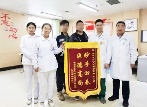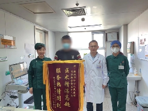一滴水珠折射光輝,一面錦旗飽含深情。5月24日,患者田先生將一面印有“醫(yī)術(shù)精湛高超,服務(wù)熱情周到”的錦旗,雙手送到急診病房醫(yī)護人員手中。田先生激動地說:“是急診病房全體人員精湛的醫(yī)術(shù)和細心的護理讓我擺脫了病痛,真是太感謝你們了!”田先生,33歲,近日無明顯誘因出現(xiàn)發(fā)熱,反復(fù)不退,曾外院多次就診,效果不良,