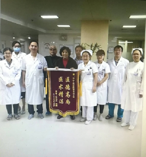 近日,在神經內三科康復出院的倪阿姨,攜老伴將一面繡有“醫德高尚,醫術精堪”的錦旗,送給了科內全體醫務人員。 倪阿姨因“左側面部及肢體麻