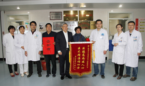 退休干部孔祥蘭,因患慢性支氣管炎在外院久治不愈,憋喘重,經過呼吸內一科高志主任醫師及甘艷護士長帶領的醫護團隊精心醫治 ,住院12天痊愈出院,特送錦旗一面,以