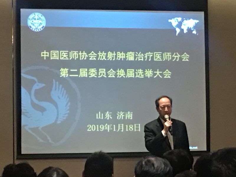 1月18日,中國醫師協會放射腫瘤治療醫師分會第二屆委員會換屆會議在濟南舉行。中國醫師協會領導主持換屆選舉會議,山東省腫瘤醫院李寶生副院長當選會長,天津腫瘤醫院王平院長當選候任會長,我院腫瘤科張開賢主任當選為全國委員。
