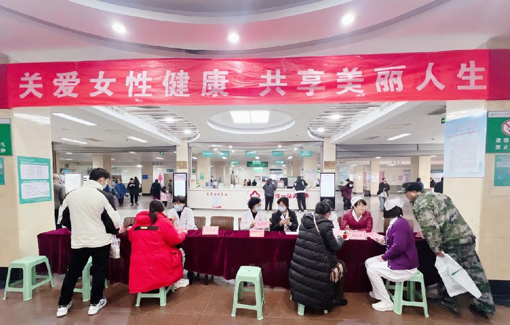 3月8日,婦產科黨支部醫護團隊在門診一樓大廳開展義診活動,現場為群眾細致解疑答惑,并發放宣傳材料。
