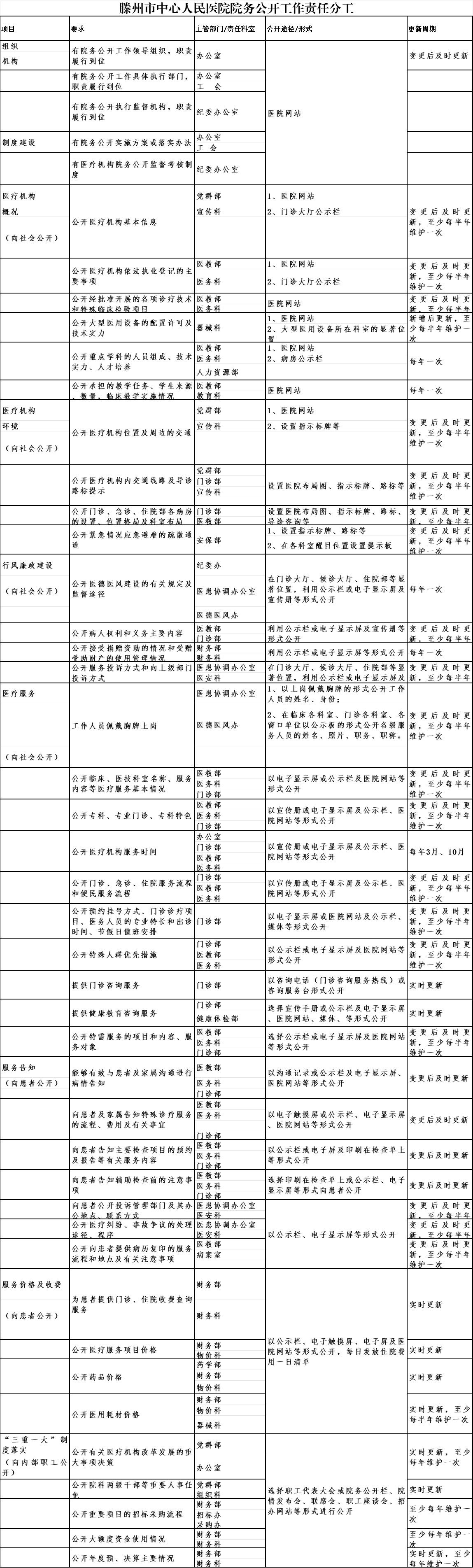 附件:滕州市中心人民醫(yī)院院務(wù)公開工作責(zé)任分工