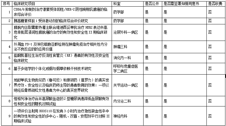 臨床研究項(xiàng)目情況