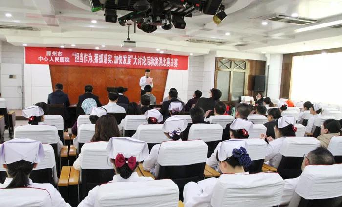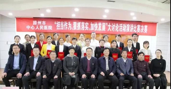為深入貫徹落實黨的十九大和全省、兩級市委“擔(dān)當(dāng)作為、狠抓落實”工作動員大會精神,進(jìn)一步深化“擔(dān)當(dāng)作為、狠抓落實、加快發(fā)展”大討論活動,凝聚醫(yī)院創(chuàng)新發(fā)展的活力,加快新舊動能轉(zhuǎn)換,充分調(diào)動干部職工的積極性,推動滕州高質(zhì)量發(fā)展。院黨委聯(lián)合院工會舉辦“擔(dān)當(dāng)作為、狠抓落實、加快發(fā)展”大討論演講比賽。
