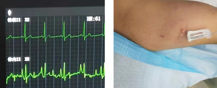 該患者因直腸癌術(shù)后為行化療收入腫瘤一科。為建立一個(gè)長(zhǎng)期、高效、通暢、便于管理的靜脈通道,保證患者化療的給藥安全,經(jīng)患者及家屬簽字同意后植入手臂靜脈植入式輸液港,患者術(shù)后步行回病房。