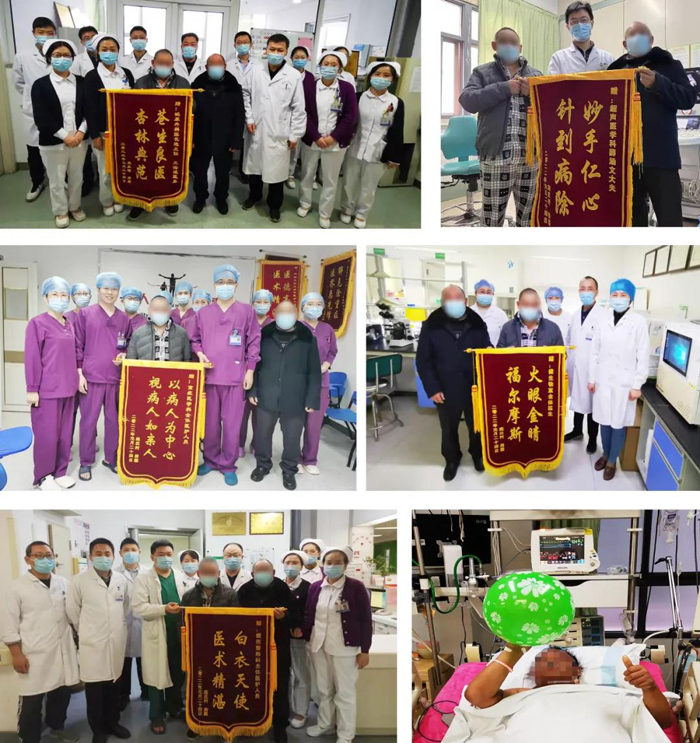 1月24日一大早,患者及家人帶著錦旗來感謝住院期間給予幫助的醫護人員,樸實的患者家人說:“患者上有老、下有小,是人民醫院的大夫、護士救了他的命,給了他第二次生命,是你們創造了生命的奇跡,拯救了我們一家人,是我們的大恩人!”