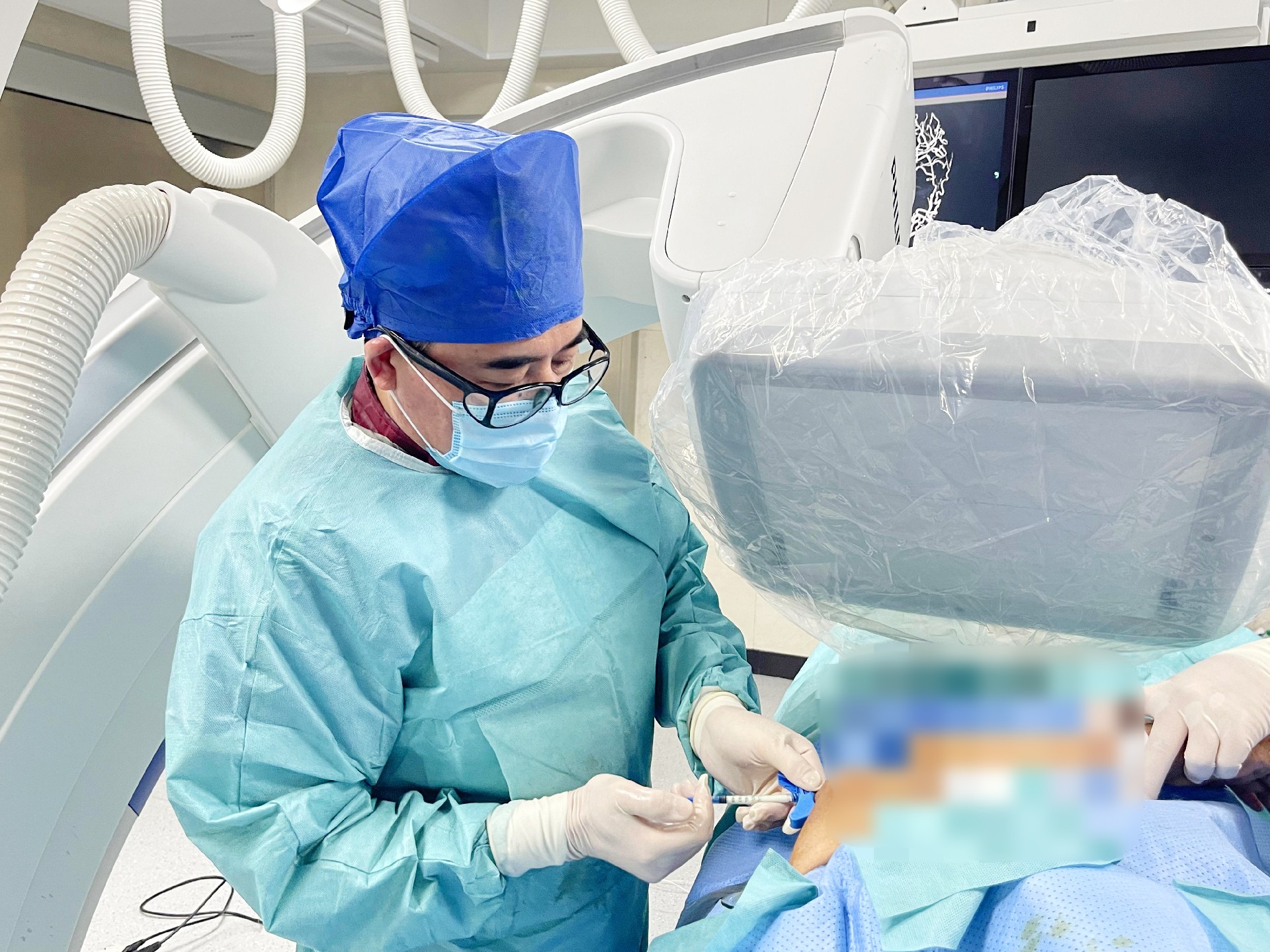 經MDT討論,決定采用新的微創技術進行治療。張開賢主任帶領團隊,在DSA引導下,先對病變區域進行微波消融,然后置入2根克氏針,最后再注射15ml骨水泥,術后第二天疼痛消失。現患者右上肢活動正常,能從事一般家務勞動。
