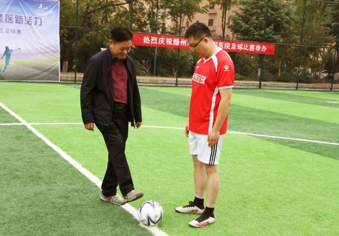 為慶祝建院70周年,提升職工健康水平,豐富職工的業余文化生活,增強職工的凝聚力,營造和諧向上的醫院文化氛圍,10月11日上午,我院第六屆職工足球比賽在市奧體中心足球場隆重開幕。滕州市人大副主任李廣憲;滕州市教育和體育局黨組成員、市體育發展服務中心黨組書記主任王介貞;滕州市融媒體中心總主編李衛東;滕州市衛健局黨組成員、機關黨委書記顏紅菊;滕州市財稅管理服務中心主任高鵬;我院院長楊瓊、黨委書記朱恒科等領導及辦公室、工會、共青團等科室負責人、參賽運動員代表出席開幕式。開幕式由黨委書記朱恒科主持。