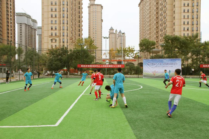 市人大副主任李廣憲為比賽開球。隨著李廣憲同志腳下的一枚開球,足球比賽正式拉開帷幕。隨即,內科隊和行政后勤隊率先打響揭幕戰。賽場上足球運動員矯健的身姿,看臺上熱情洋溢的觀眾,吶喊聲、助威聲、揮舞的國旗,瞬間把足球場變成激烈的戰場。