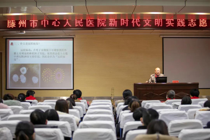 首先,感染病科主任楊列永主任醫(yī)師以“萬(wàn)眾一心、抗擊疫情”為主題,從什么是新冠病毒及其傳染途徑、醫(yī)院專業(yè)人員防疫優(yōu)先意識(shí)、教師和學(xué)生應(yīng)注意的事項(xiàng)三方面做了專題講座。講座詳實(shí)、具體、有效,更加深入認(rèn)識(shí)病毒,更清楚在當(dāng)前應(yīng)注意的問(wèn)題,他的講座受到了與會(huì)教師的一致肯定和充分認(rèn)可。