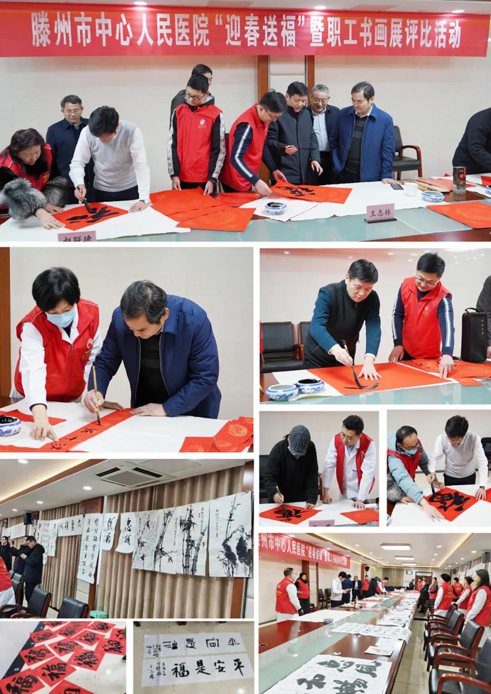 書畫頌春、筆墨賀歲。為迎接2022年新春佳節的到來,展現滕醫人的人文素養和精神風貌,營造高雅文明的醫院文化氛圍,1月22日下午,我院開展“迎春送福”暨職工書畫展評比活動。