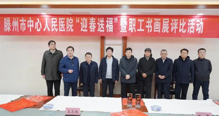 本次活動特邀市文聯副主席王志林、市書法家協會主席楊雯、市青年書法家協會副主席趙聯琦等滕州書畫名家到場,院長武宗義、黨委副書記朱紹猛、紀委書記趙逢平、副院長顏景朋、黨群工作部主任王維以及醫院職工書畫愛好者、志愿者參加活動。