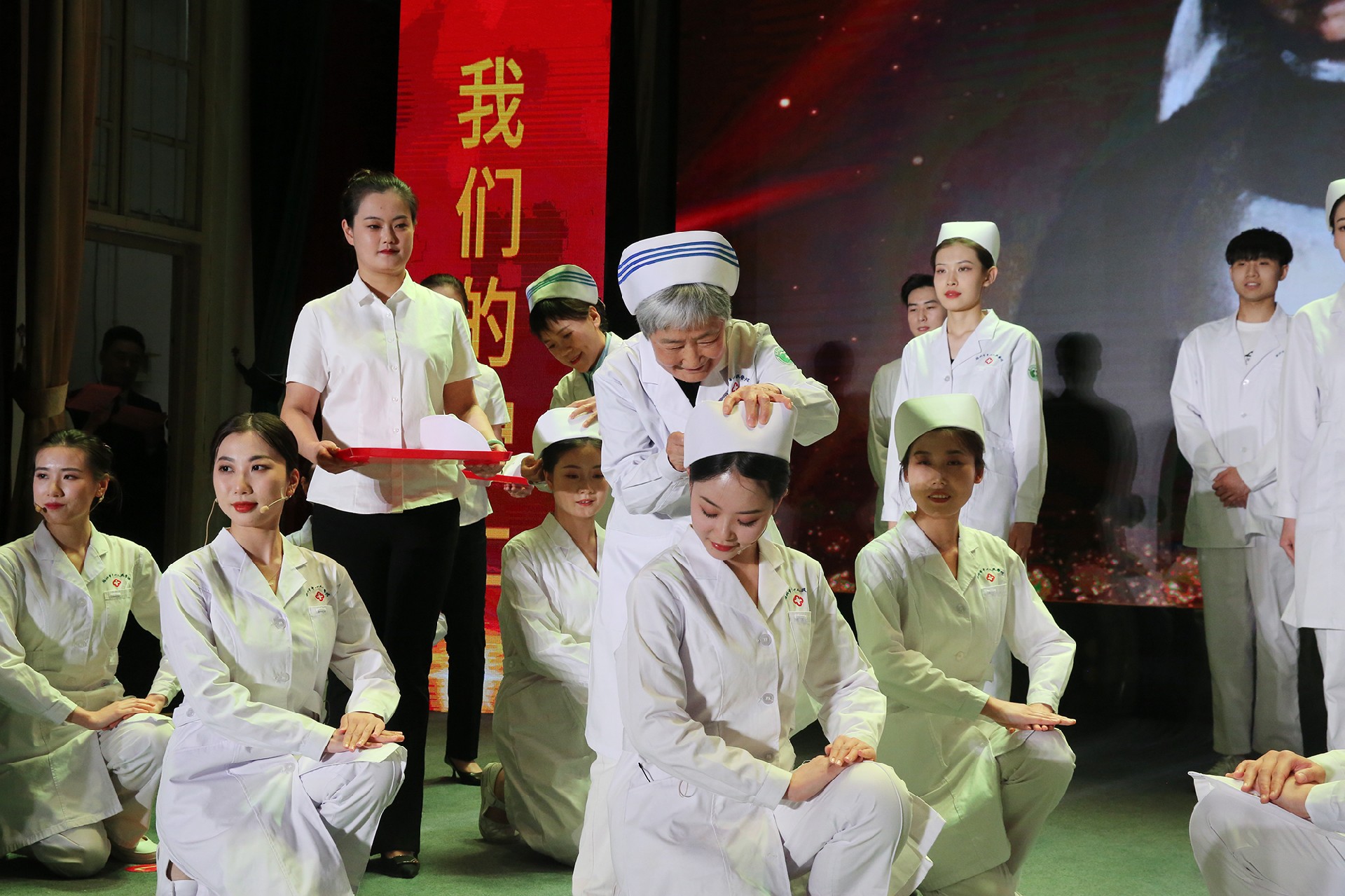燕尾為冠,傳承使命。大會舉行了神圣莊嚴(yán)的授帽儀式。我院護(hù)理老前輩為新護(hù)士戴上圣潔的燕尾帽,并將象征南丁格爾精神的蠟燭傳遞給他們,寓意著薪火賡續(xù)、使命傳承。護(hù)理人員集體宣誓,南丁格爾誓言再次回響在耳畔,迸發(fā)出無窮力量,以青春之誓,忠貞職守,護(hù)佑生命。