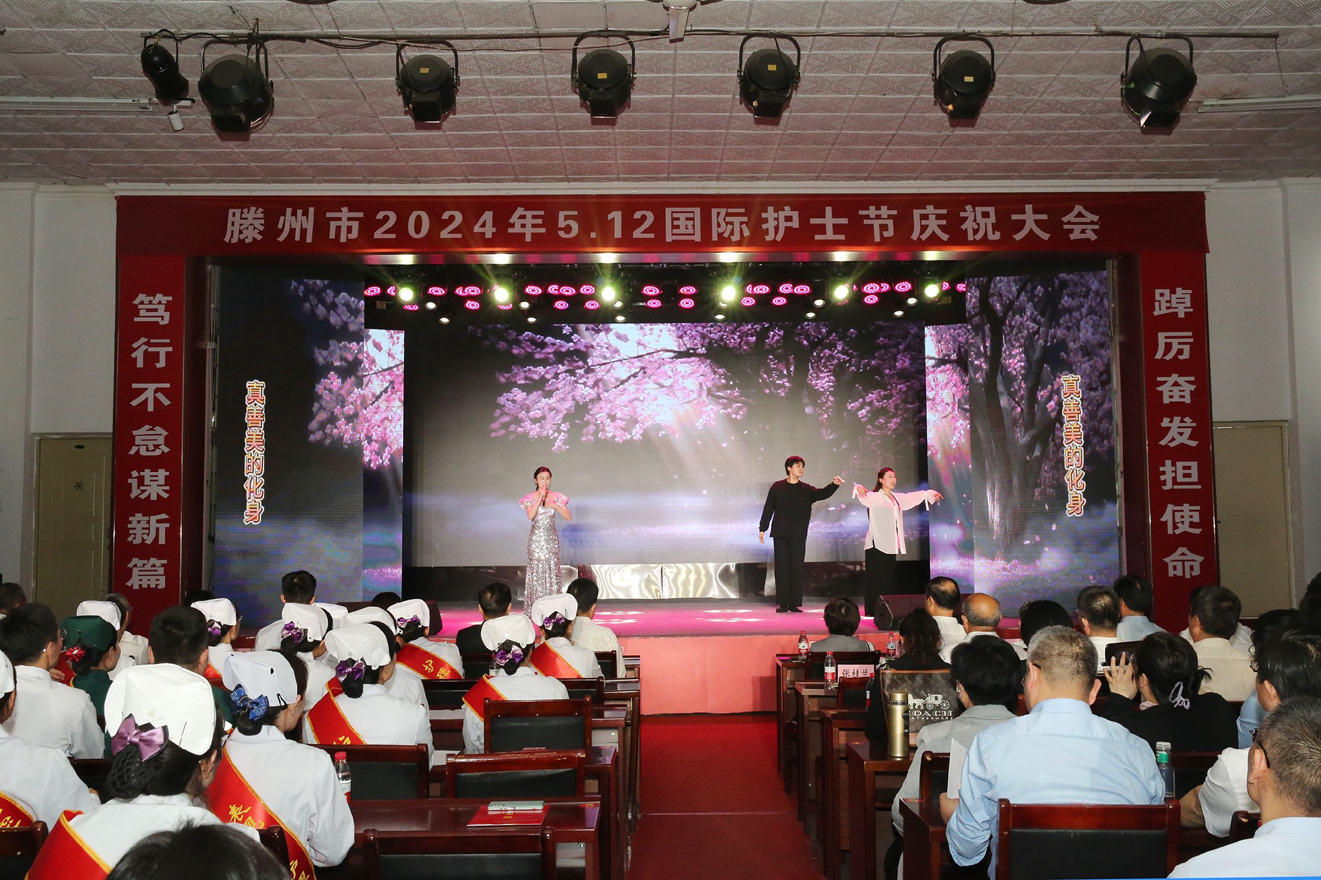 期間,進(jìn)行了精彩的文藝表演。情景表演《希望你被這個(gè)世界愛著》、朗誦《天使之光》、情景歌舞《燦爛的五月》等節(jié)目,贏得了全場陣陣掌聲。大會在歌曲《中國護(hù)士之歌》《我們的新時(shí)代》合唱中落下帷幕。
